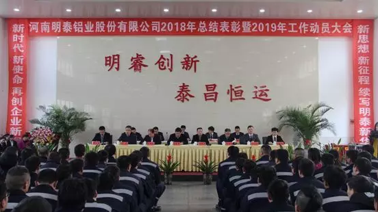 河南明泰鋁業(yè)股份有限公司2018年度總結(jié)表彰暨2019年工作動(dòng)員大會(huì)于2019年1月11日上午在公司禮堂順利召開(kāi),鞏義市產(chǎn)業(yè)集聚區(qū)管委會(huì)副主任、回郭鎮(zhèn)黨委書記王躍舉,公司董事長(zhǎng)馬廷義,副董事長(zhǎng)化新民、杜有東,總經(jīng)理劉杰及500余名干部職工參加會(huì)議。