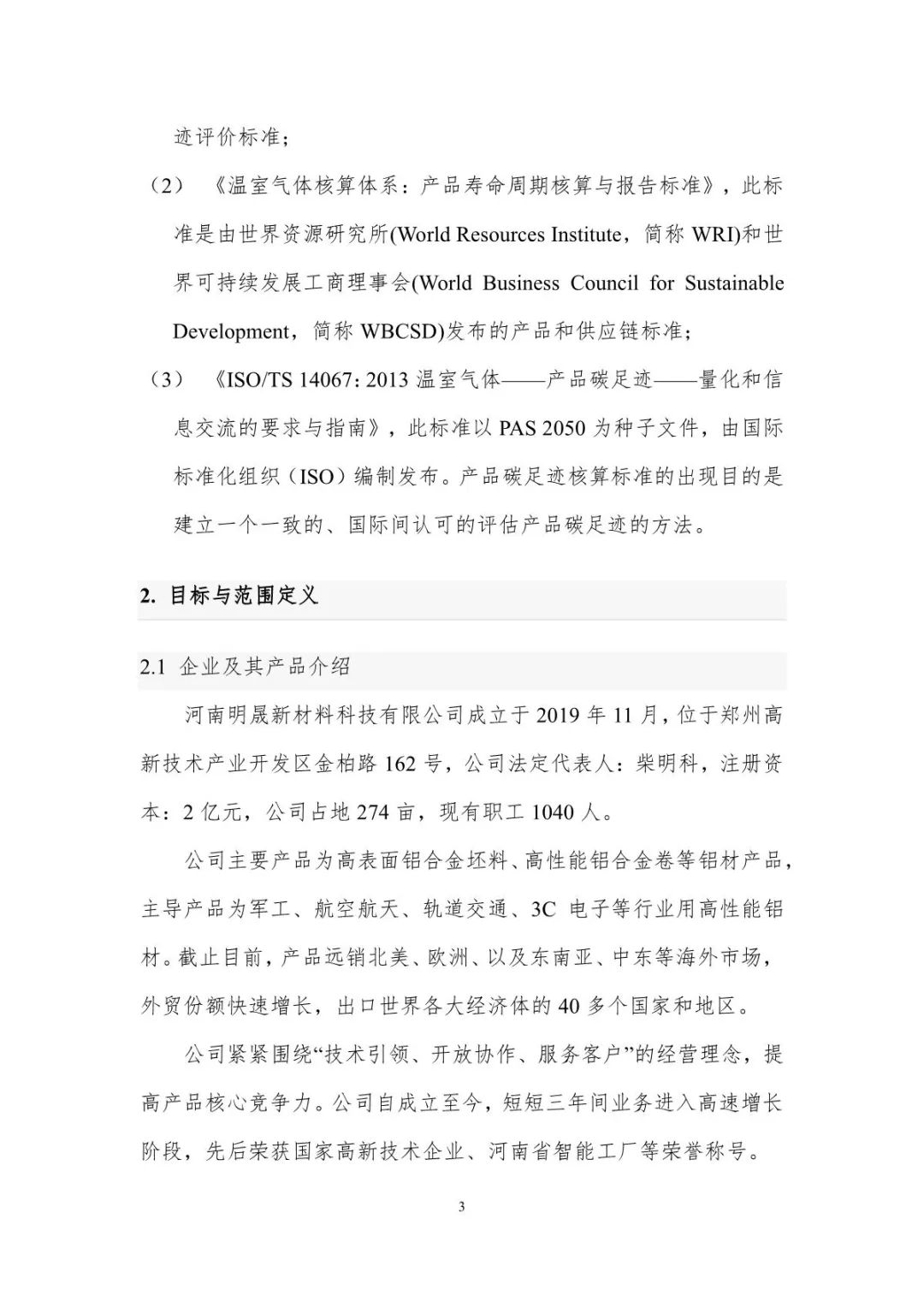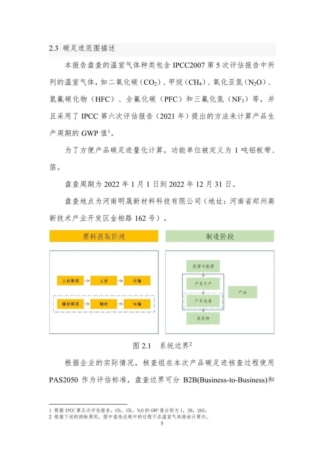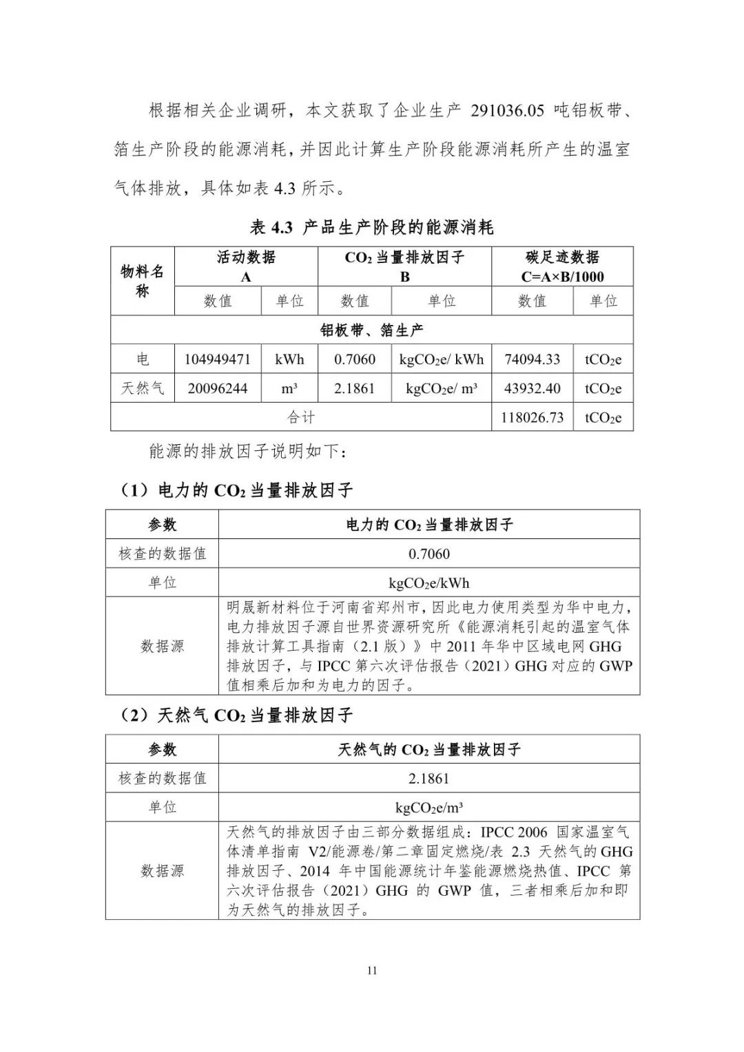 明泰鋁業(yè)子公司明晟新材料-產(chǎn)品碳足跡報告